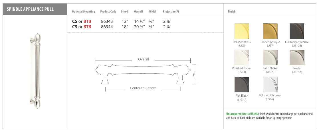 EMTEK Spindle Series 12" & 18" Appliance Pulls