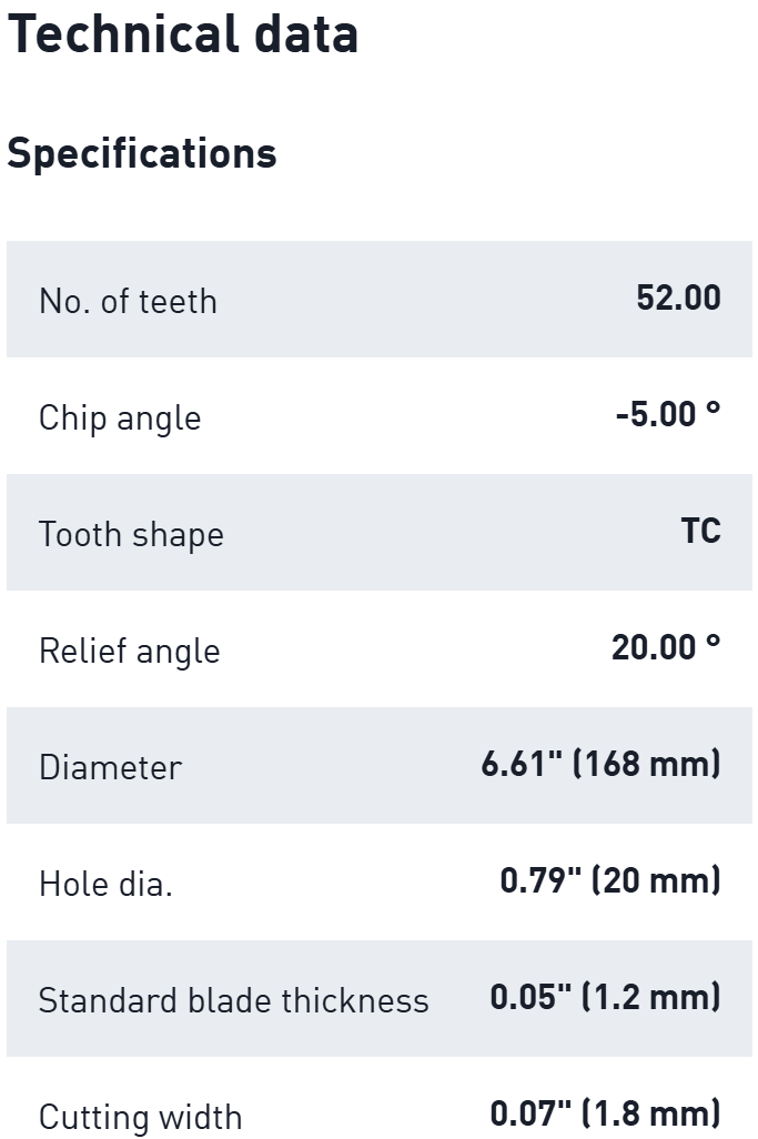 Festool 205773 Saw Blade HW 168x1,8x20 TF52 L LAMINATE/HPL
