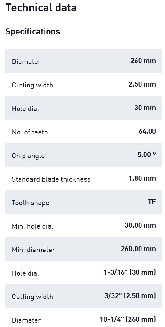 - 64 tooth; 2.5mm kerf; 30mm arbor; -5 deg hook angle; MATB