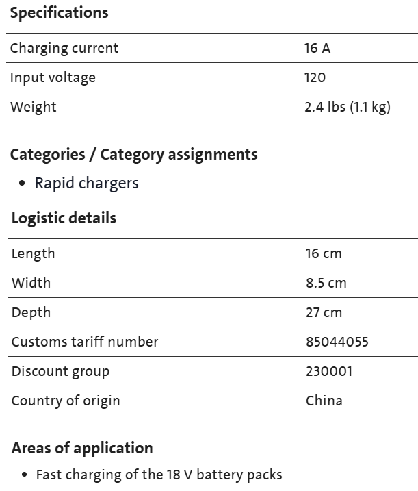 - Ideal in combination with the 8.0 Ah Li-HighPower battery pack: Charged with 16 amps and ready for use again in just 27 minute