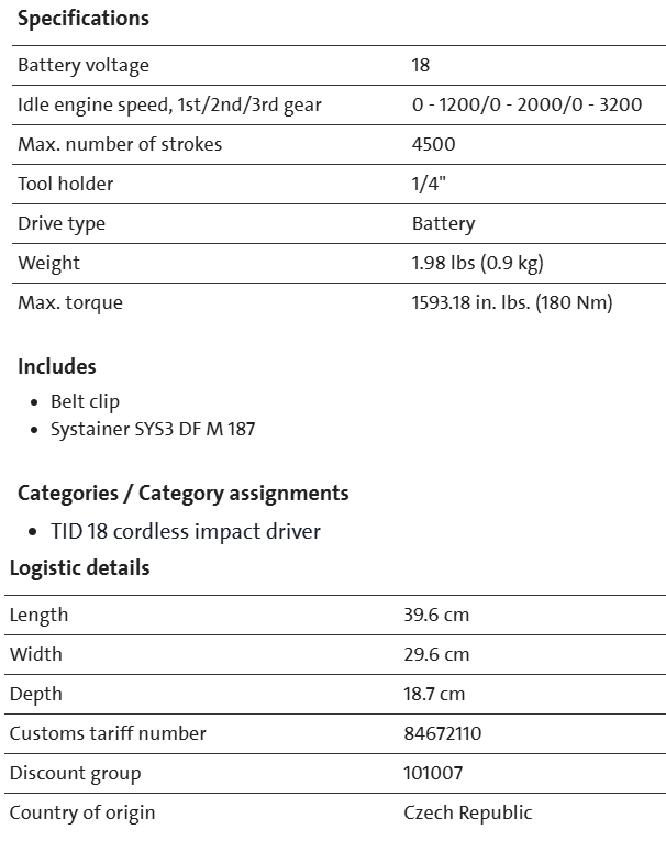 - Mobile: packed in a Systainer, the TID 18 can be integrated perfectly into the your Festool system of tool storage