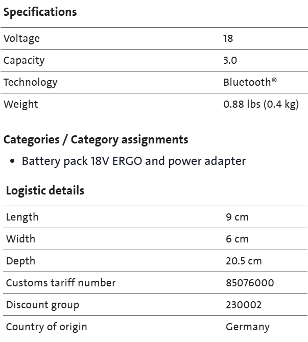 Festool 577705 Battery pack BP 18 Li 3,0 Ergo I