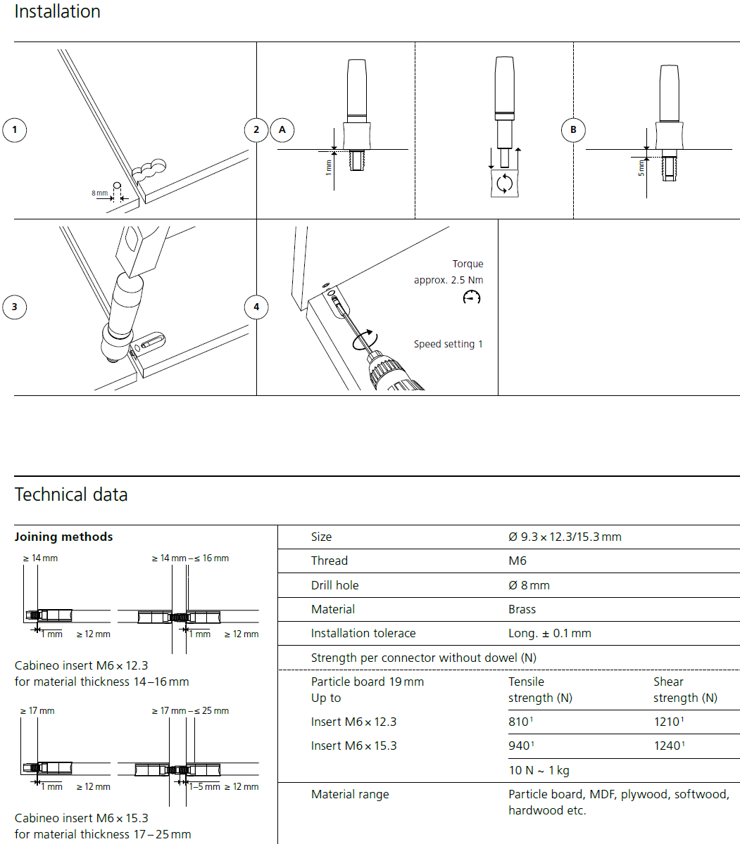 The Cabineo insert M6 is a threaded insert to drive in, which can be used in combination