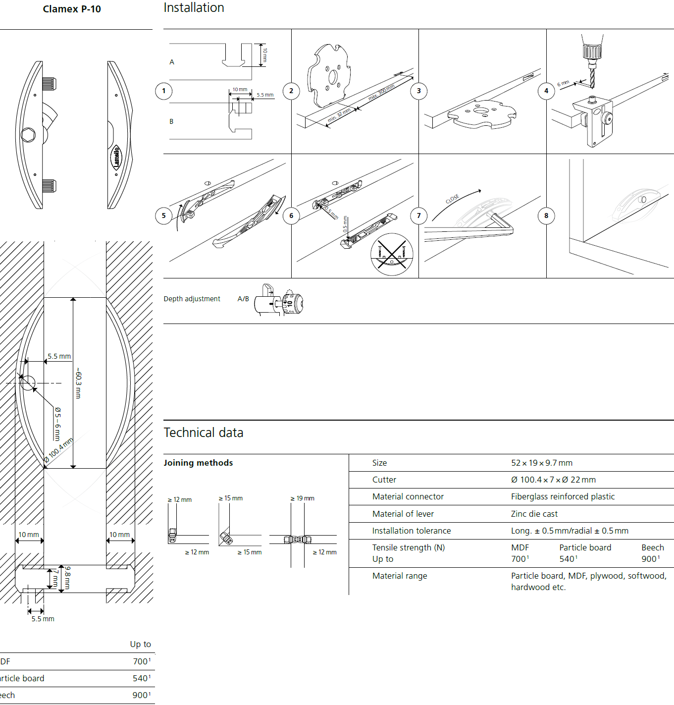 Lamello Clamex P-10, Detachable connector for materials from 12 mm thickness, 80 - 300 - 1000 Packs