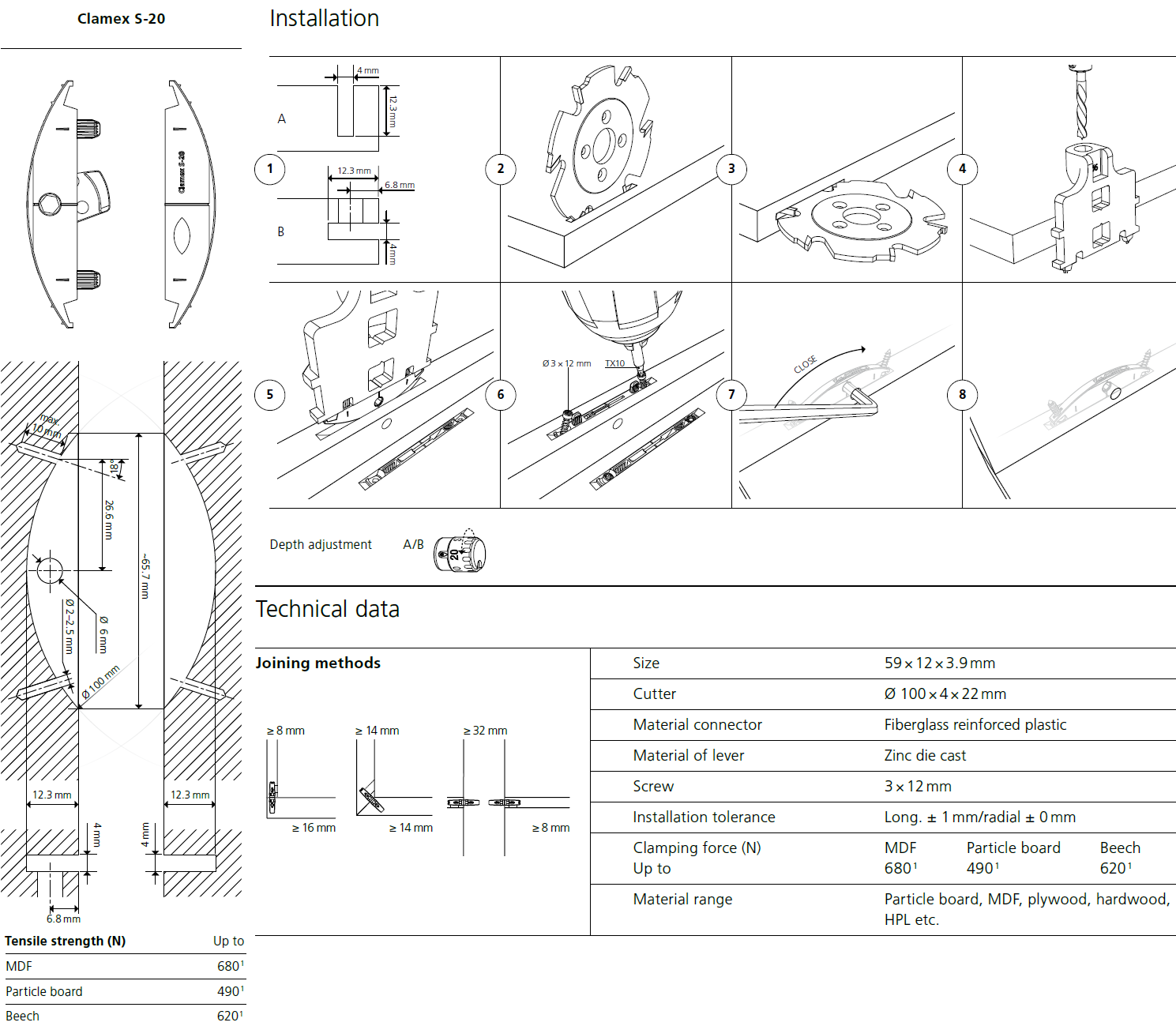 Lamello Clamex S-20, Detachable furniture connector for the 4 mm groove -ALL ITEMS