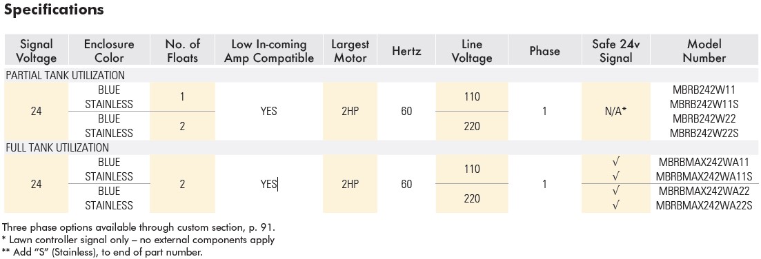 • Float controls are wired for 24v reduced external voltage, which is safer if people or pets could come in contact with external