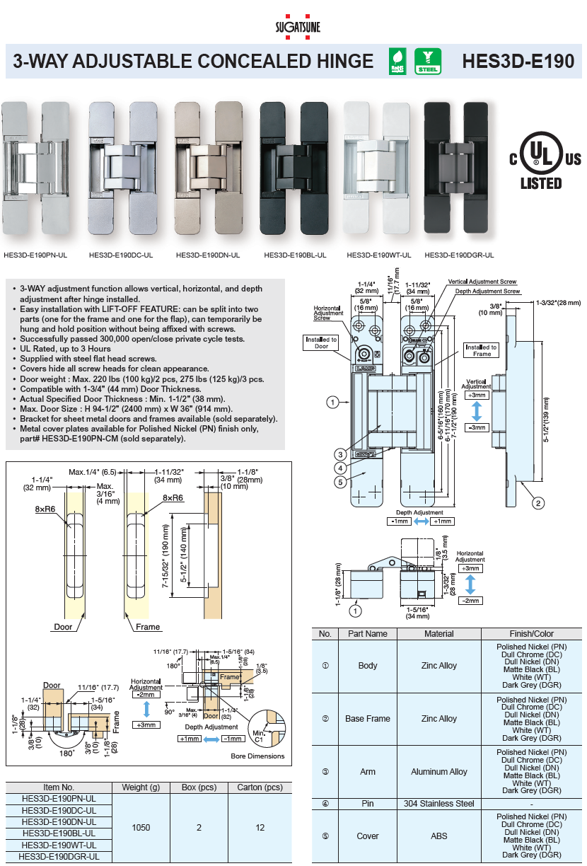 SUGATSUNE HES3D-E190 SERIES HINGES