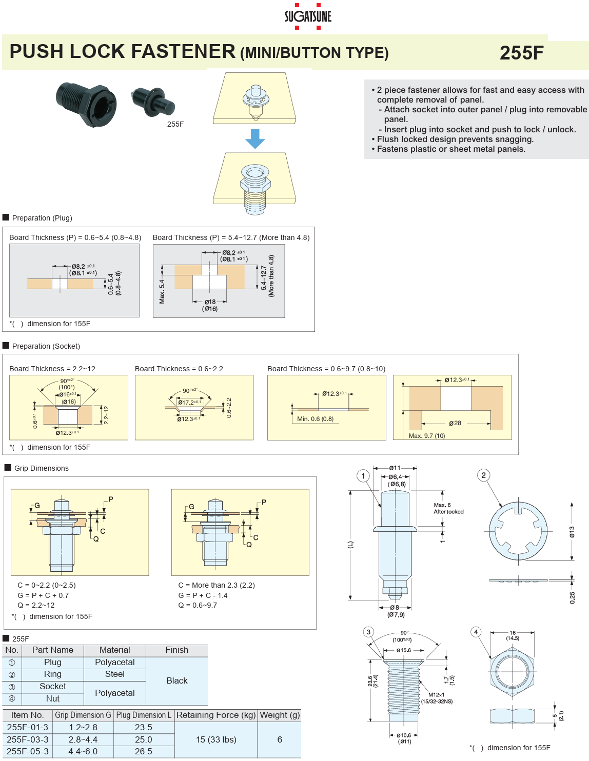 Sugatsune 255F PUSH LOCK FASTENERS (MINI/FLUSH TYPE)
