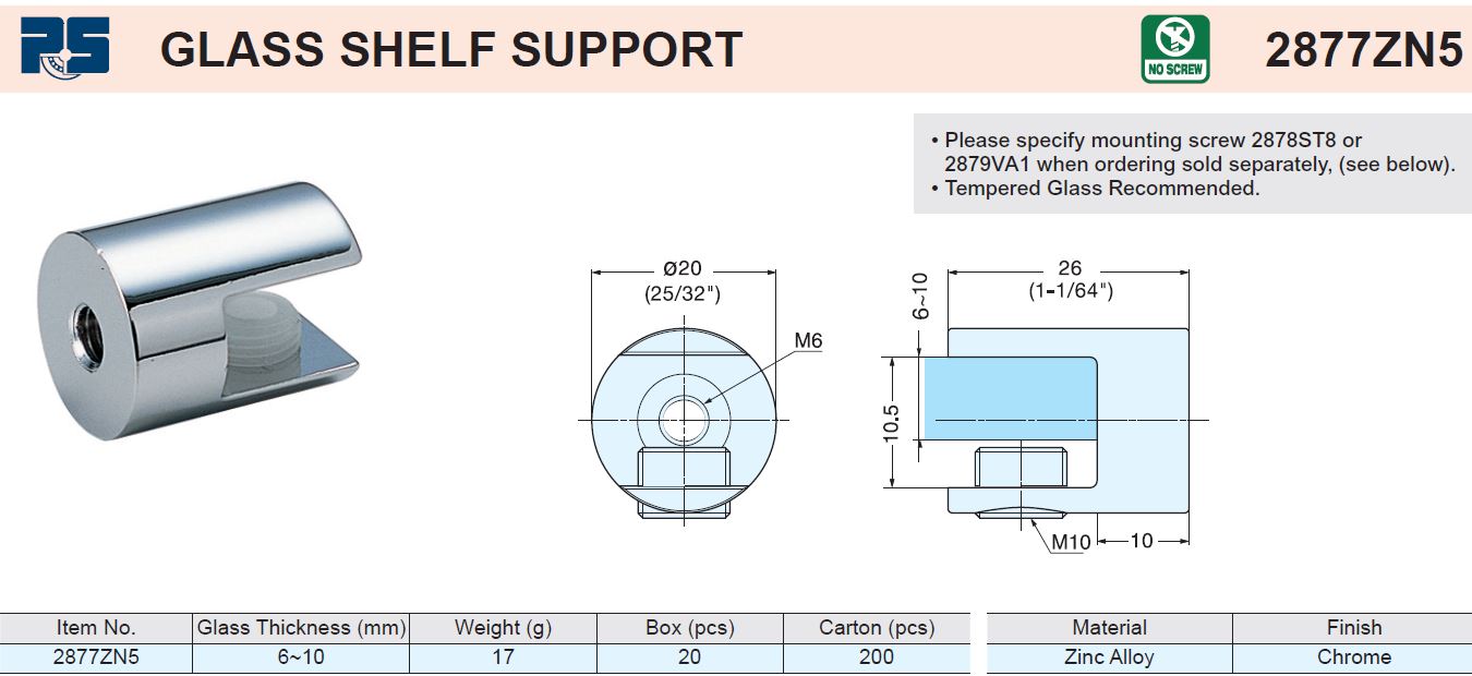 Sugatsune 2877ZN5 GLASS SHELF SUPPORT