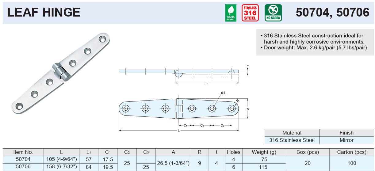 Sugatsune 50704, 50706 LEAF HINGES