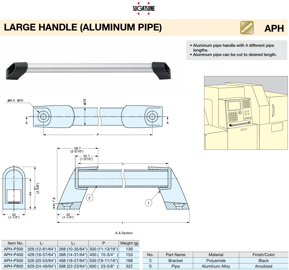 Sugatsune APH Large Aluminum Handle With Brackets 4 LENGTHS