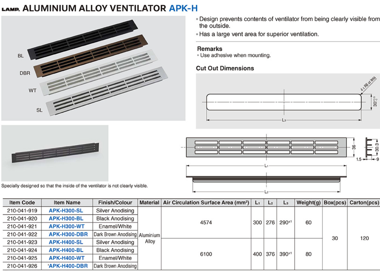 Sugatsune APK-H ALUMINIUM ALLOY VENTILATORS 2- SIZES AND 4 FINISHES
