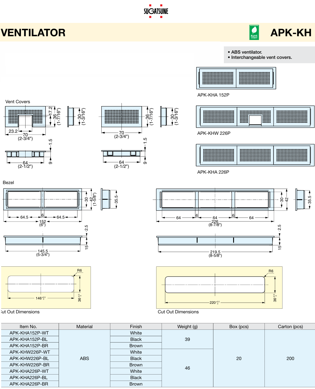 Sugatsune APK-KHA-APK-KHW ABS ventilators