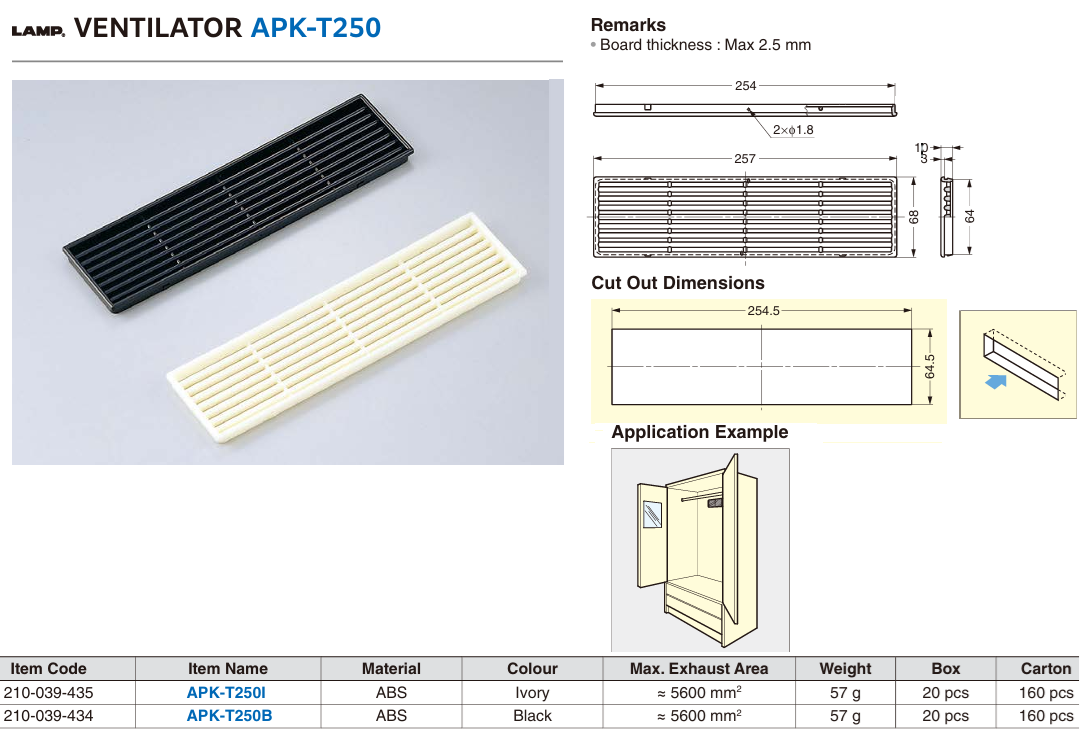 Sugatsune APK-T250 Thin Profile ABS ventilators