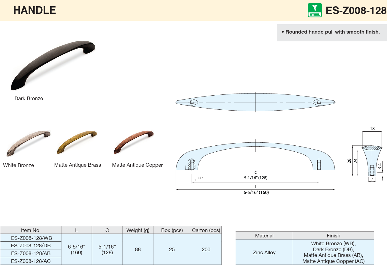 • Rounded hande pull with smooth finish.