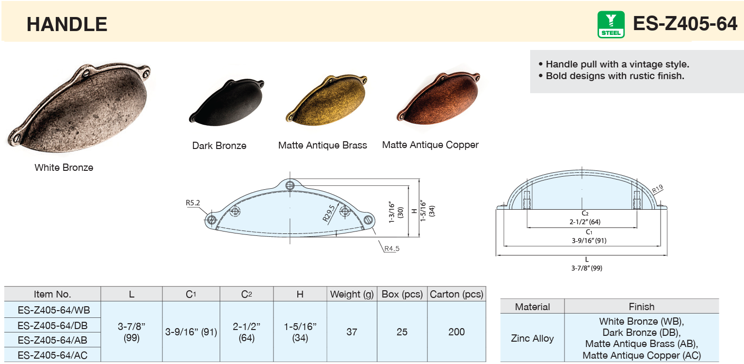 Sugatsune ES-Z405-64 Series Cup Design Pulls 2-1/2" (64mm) Center to Centers