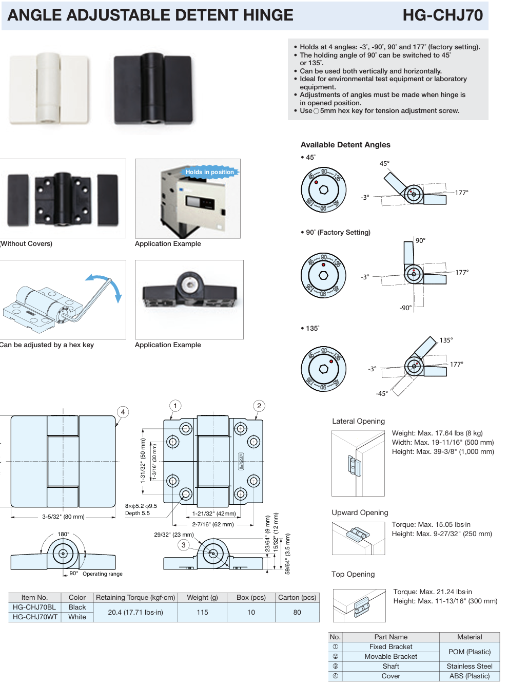 SUGATSUNE HG-CHJ70 ANGLE ADJUSTABLE DETENT HINGE Black or White