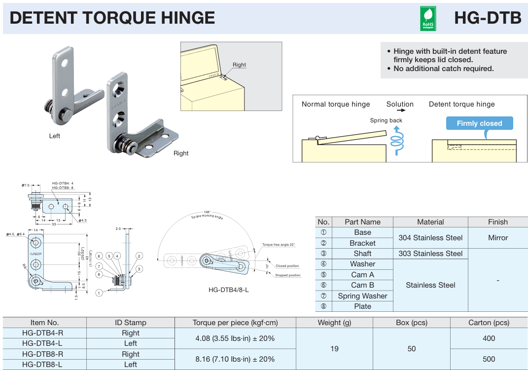 SUGATSUNE HG-DTB DETENT TORQUE HINGE