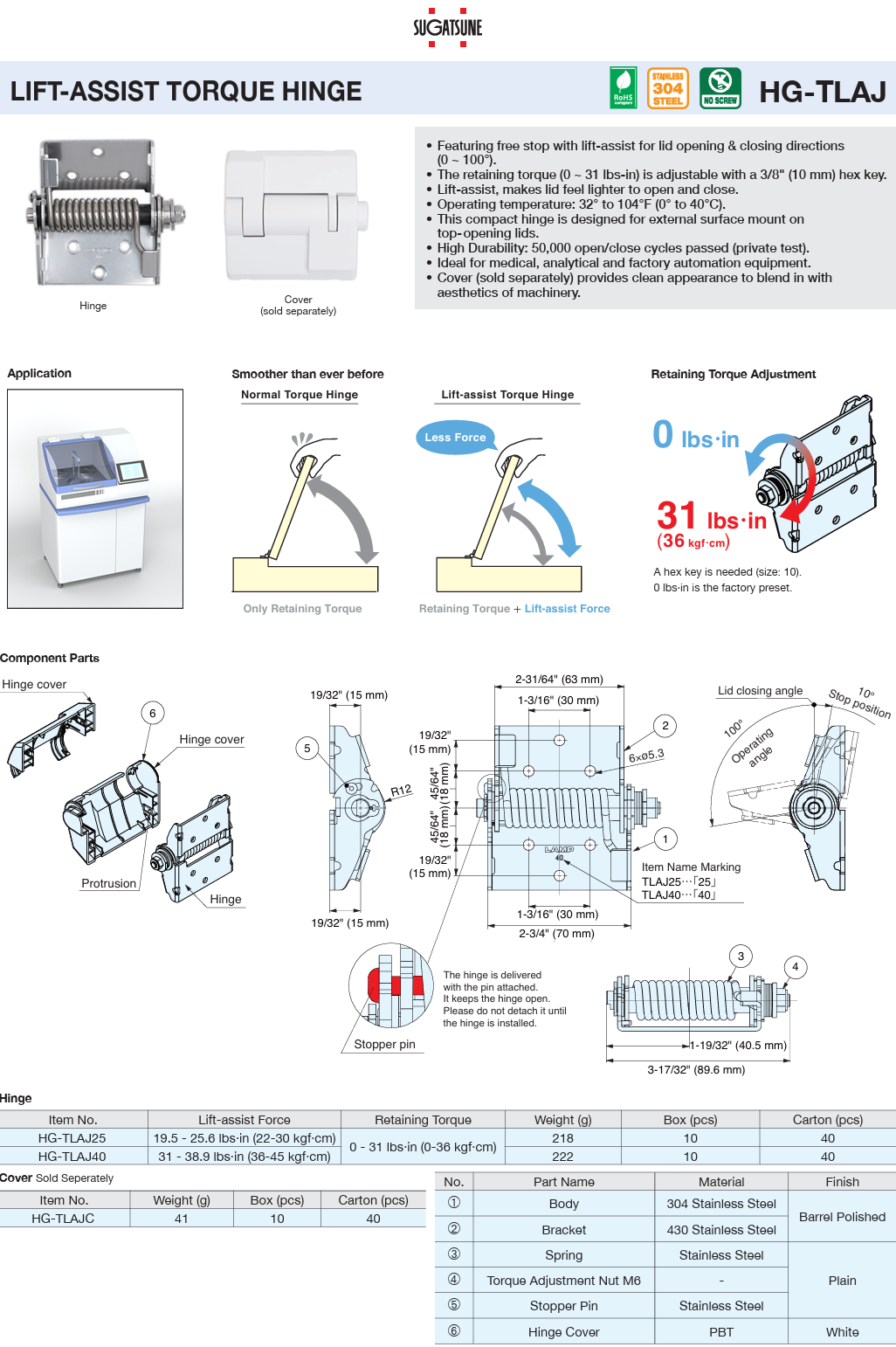 SUGATSUNE HG-TLAJC COVER CAP FOR HG-TLAJ LIFT-ASSIST TORQUE HINGES