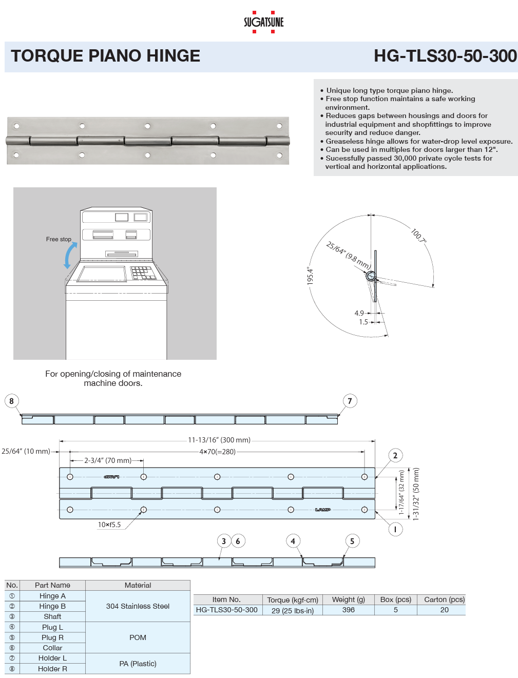 • Reduces gaps between housings and doors for TORQUE PIANO HINGE industrial equipment and shopfittings to improve