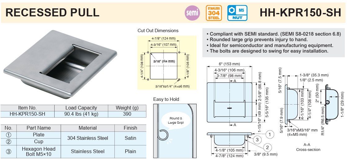 Sugatsune HH-KPR150-SH 304 Stainless Steel RECESSED PULL