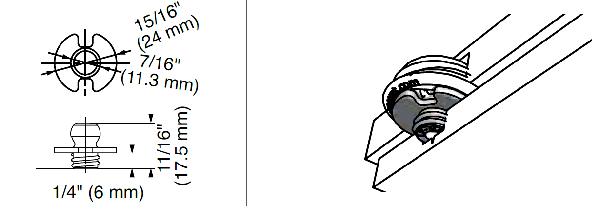 Mounts into: Plywood & MDF type boards with 3/8” (10mm) hole