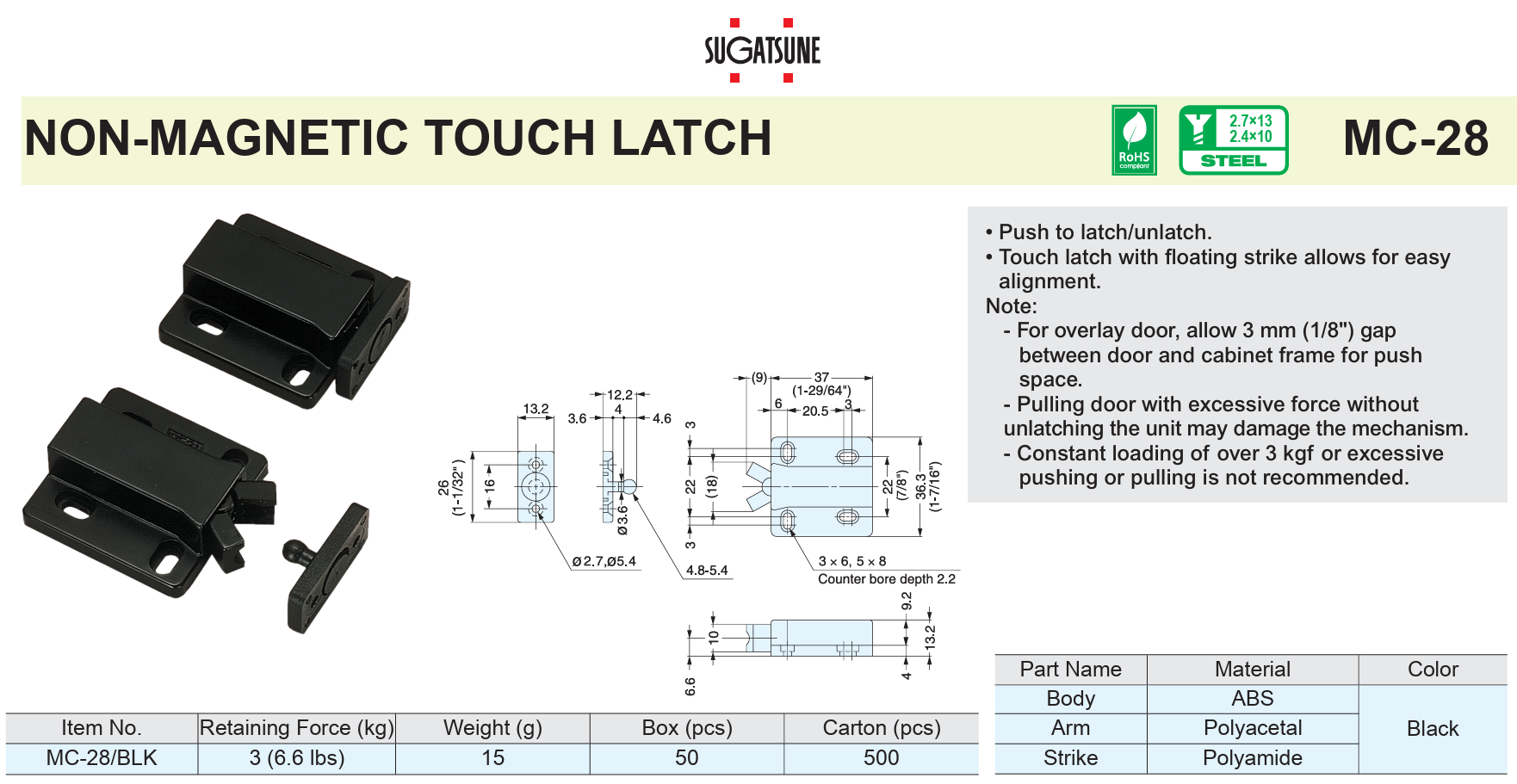 Sugatsune MC-28-STRIKE-Strike for the MC-28 non magnetic touch latch
