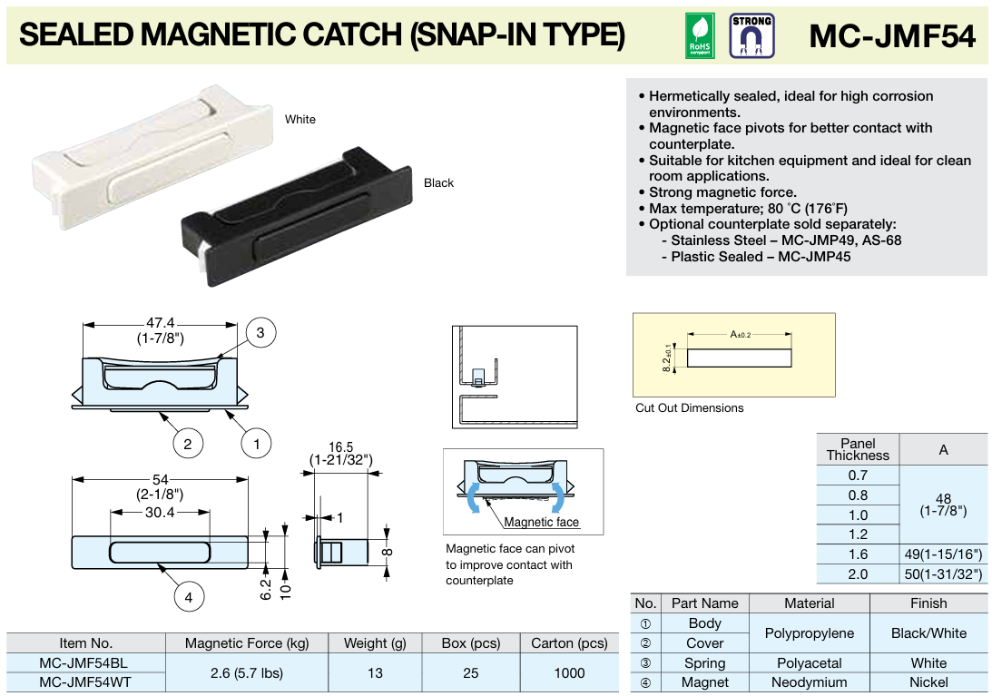 Sugatsune MC-JMF54 SEALED MAGNETIC CATCH (SNAP-IN TYPE)