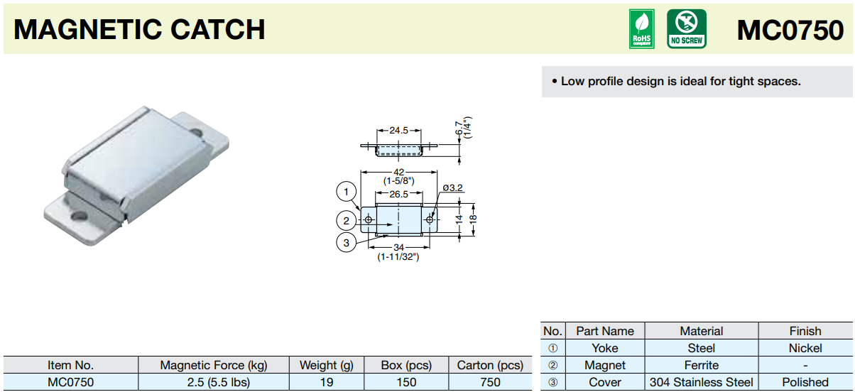 Sugatsune MC0750 Stainless Steel Magnetic Catch
