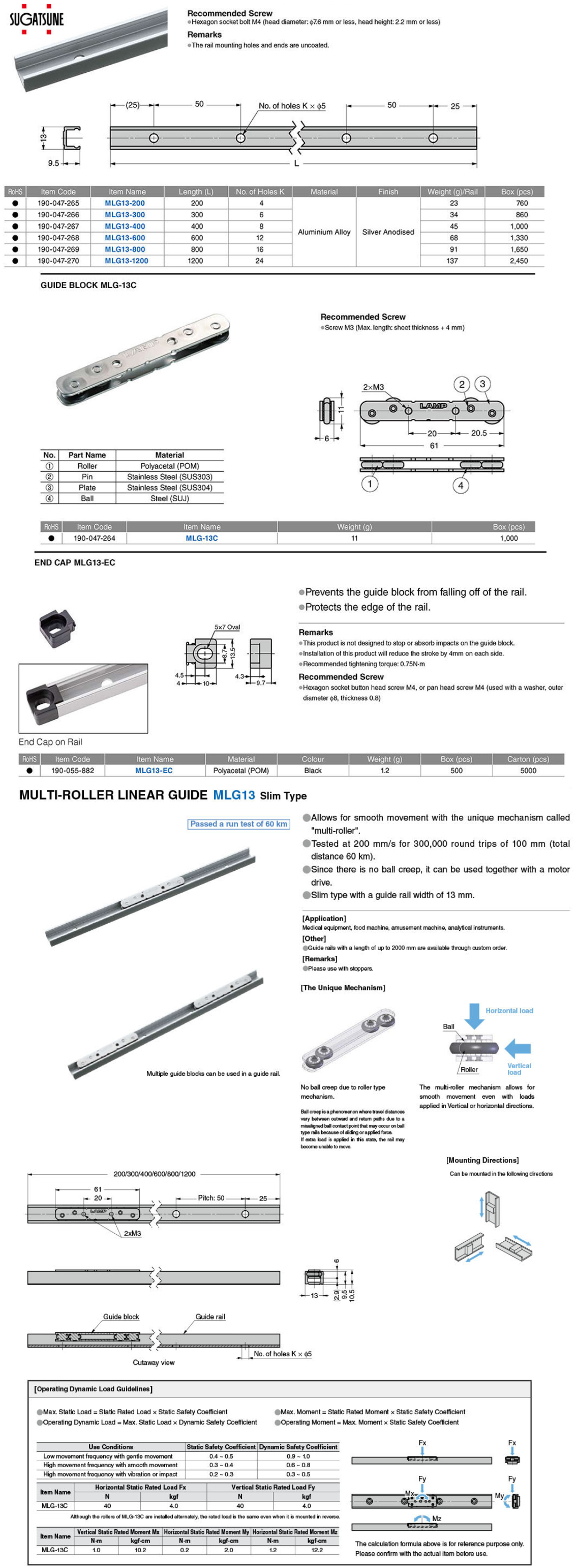 SUGATSUNE MLG13 Slim Type MULTI-ROLLER LINEAR GUIDE