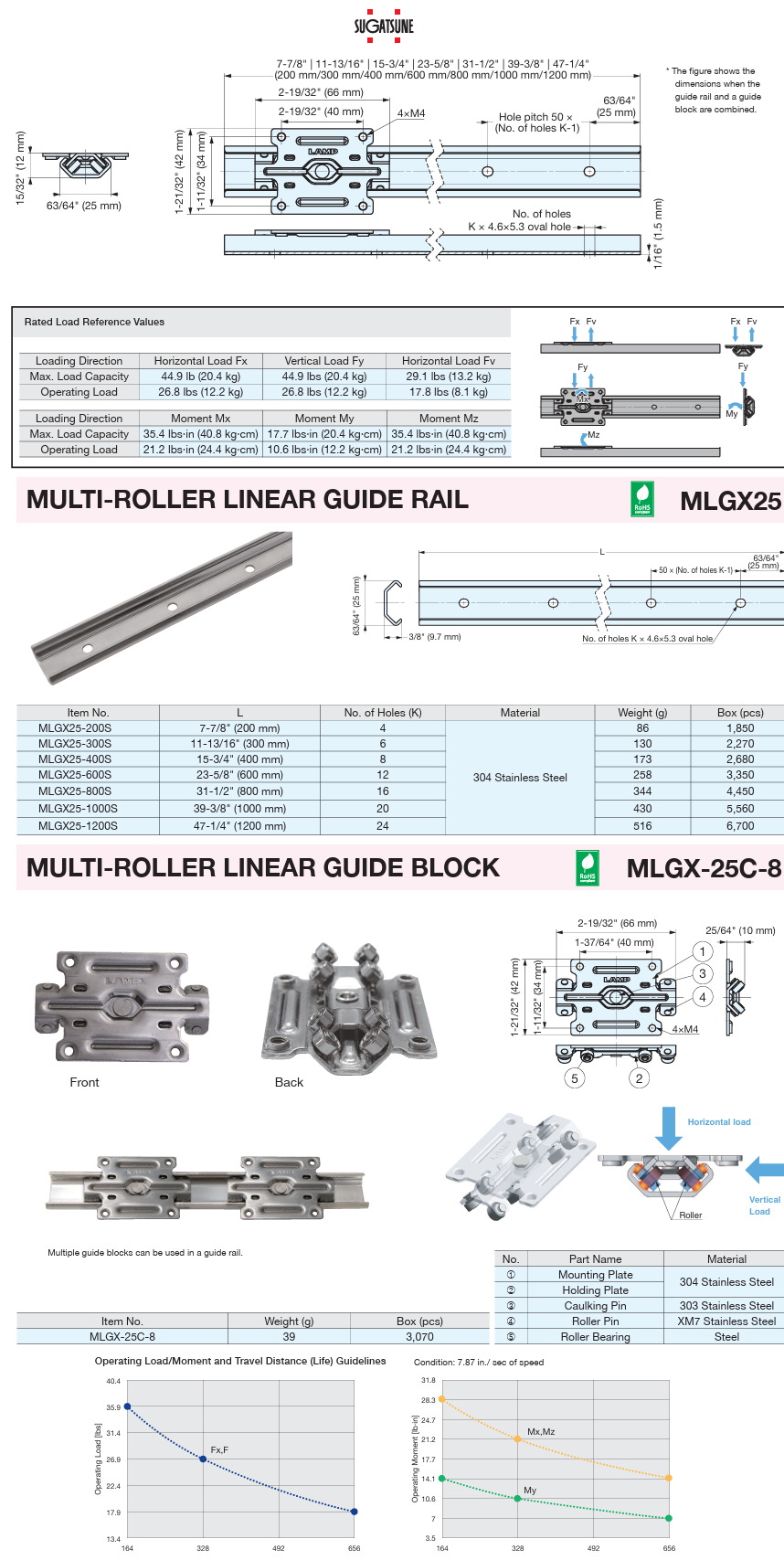 SUGATSUNE MLGX25 MULTI-ROLLER LINEAR SLIDE SYSTEM For Medium Load