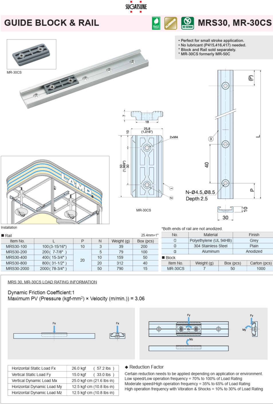 SUGATSUNE MRS30 GUIDE BLOCK - RAIL - CLIPS