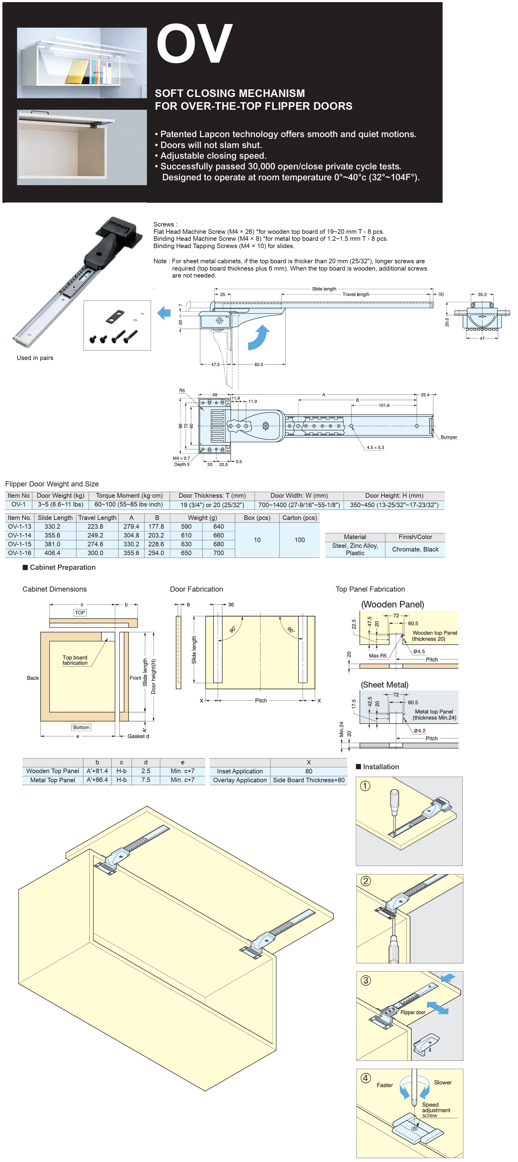 SUGATSUNE OV-1 Series Soft Closing Mechanism for Over the Top Flipper Doors