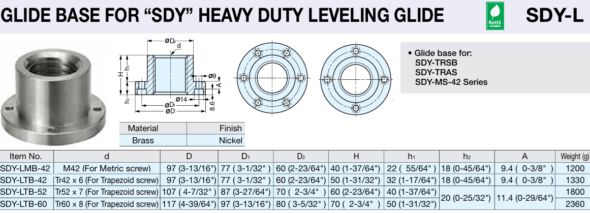 GLIDE BASE FOR “SDY” HEAVY DUTY LEVELING GLIDE