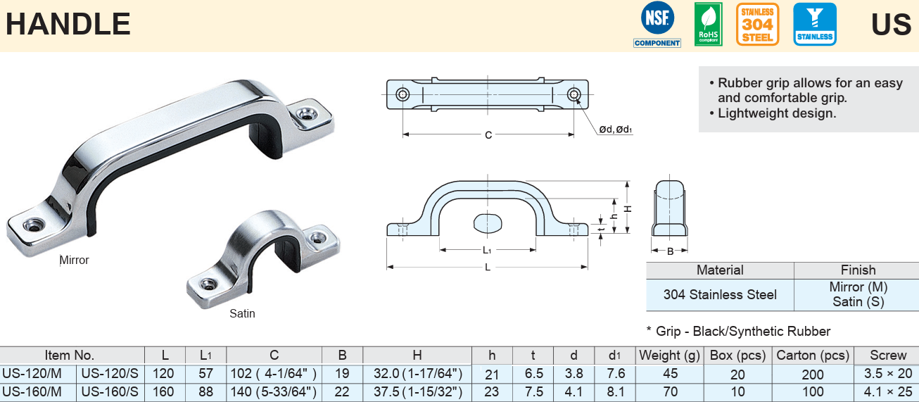 Sugatsune US Series Stainless Steel & Rubber Handles