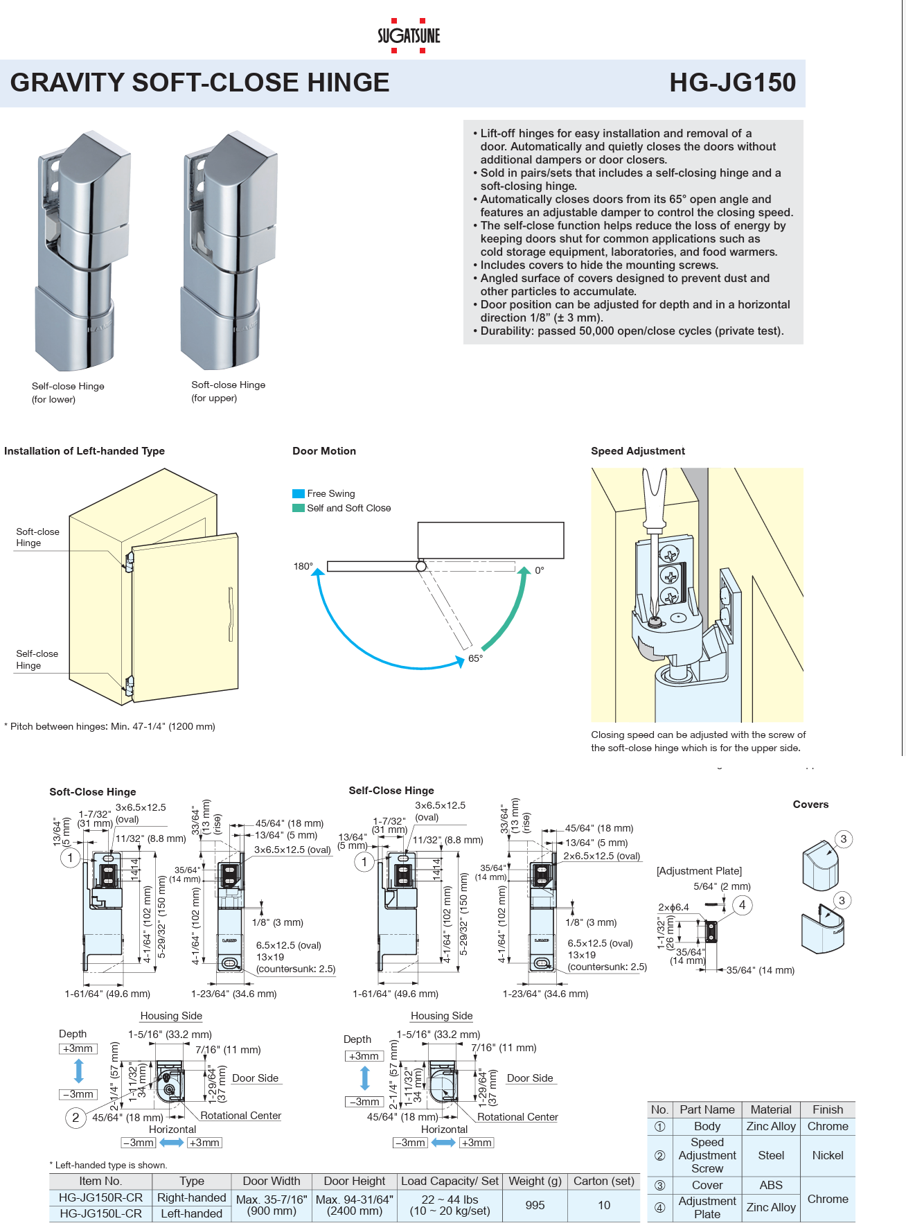 SUGATSUNR HG-JG150 GRAVITY SOFT-CLOSE HINGE HANDED